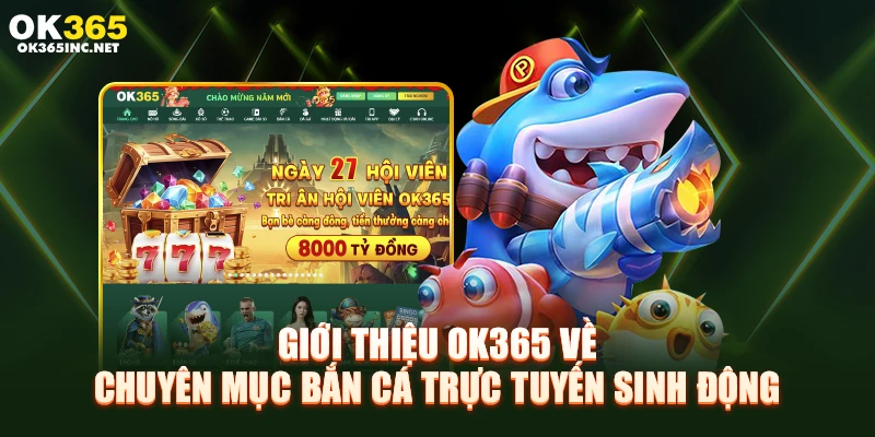 Giới thiệu OK365 không thể bỏ qua chuyên mục bắn cá, đã thu hút người dùng nhờ lối chơi tương tác đơn giản, hình ảnh 3D sống động, âm thanh vui nhộn. Chuyên mục mang đến 500+ tựa game, với đa dạng vũ khí, các loài sinh vật biển, cũng hệ thống phòng chơi đa cấp độ. Sân chơi còn tích hợp bảng xếp hạng theo tuần, tháng, giúp người chơi theo dõi hiệu suất và cạnh tranh với cộng đồng.